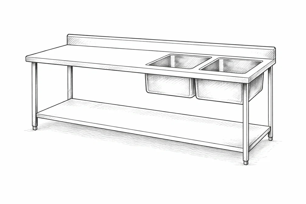 Tento typ stolu je vhodný do restaurací, hotelů i menších provozoven, kde je potřeba spolehlivý pracovní stůl s dřezem, který je k dispozici bez dlouhého čekání.